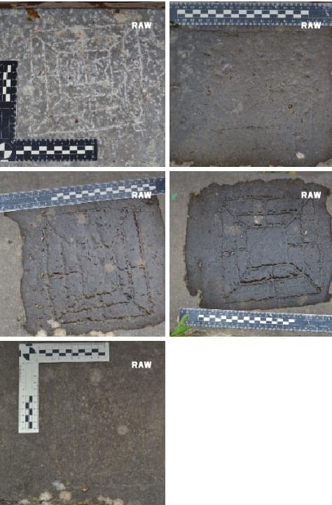 Chiesa di San Giacomo. Sono state rilevato ben 6 TC, ubicate in orizzontale sul sagrato della chiesa. Il modello è prevalentemente con diagonali. La chiesa è’ stata fondata sul finire della seconda metà del XIV secolo dai devoti Andrea Vaccaro e Domenico Giallombardo. E’ a tre navate, divise da pilastri in muratura su cui poggiano archi a tutto sesto; la copertura è a capriate lignee. Per oltre 30 anni è stata chiusa al culto, ora riattivata, ospita il simulacro di san Giacomo Apostolo il Maggiore, Patrono di Gratteri. Le navate si concludono con tre cappelle, di cui quella centrale, dedicata a San Giacomo, è sormontata da una piccola cupola (fonte: Comune di Gratteri, PA). Il bellissimo esemplare nella foto di apertura appare ben tracciato e proporzionato, con le diagonali (misure circa 17 x 17 cm). Gli altri esemplari sono mostrati, in un collage, nella foto sottostante: