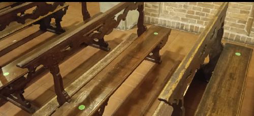 Una TC nel modello classico è stata documentata su una delle sedute dei banchi lignei cinquecenteschi che arredano la chiesa di San Dalmazio. Di origini antiche (attestata attorno all'anno mIlle), ha subito vari rimaneggiamenti e dopo la resturazione, all'epoca di Maria Luigia, diventò oratorio ducale e reale con Carlo III di Borbone. Opsita attualmente la Confraternita dello Spirito Santo. La TC potrebbe essere stata incisa in ogni tempo, è impossibile datarla, in mancanza di dati.